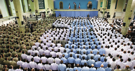 فرمانده کل قوا خطاب به نیروهای مسلح گفتند: همه دستگاهها اعم از وزارت دفاع تا ارتش و سپاه باید آمادگیهای نظامی و دفاعی خود را روز به روز افزایش دهند و این به منزله یک دستور العمل رسمی است. حضرت آیتالله خامنهای رهبر معظم انقلاب اسلامی صبح یکشنبه در دیدار با جمعی از فرماندهان، کارکنان و خانوادههای شهدای ارتش، نیروهای مسلح را به حفظ و تقویت بصیرت و جهتگیریهای دینی و انقلابی و افزایش توان دفاعی و تسلیحاتی و آمادگی روحی توصیه موکد کردند و گفتند: جمهوری اسلامی ایران هیچگاه تهدیدی برای منطقه و کشورهای همسایه نبوده و نخواهد بود اما در برابر هرگونه تعرضی کاملا مقتدرانه عمل خواهد کرد.