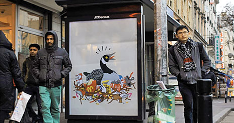 این آثار هنری در فضاهای متعلق به شركت تبلیغاتی «JCDecaux»، یكی از حامیان مالی این گفت‌وگو‌ها قرار گرفتند. حامیان مالی بزرگ نشست سازمان ملل درباره تغییرات آب و هوایی از قبیل فولكس واگن، Air France و شركت‌های نفتی Mobil و Total در این آگهی‌های انتقادی خود بخشی از مشكل هستند.