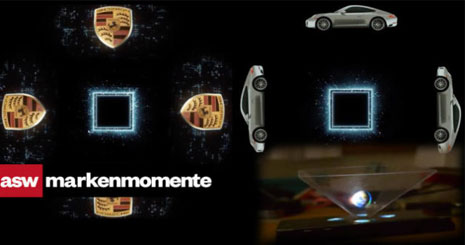 یکی از محبوبترین و مشهورترین خودروهای برند پورشه مدل Porsche 911 است. حال پورشه نخستین تبلیغ هولوگرافیک چاپی دنیا را برای این خودرو اجرا کرده است. برای اجرای این ایده پورشه یک آگهی چاپی در مجله معتبر Fast Company منتشر کرده است که حاوی یک مکعب پلاستیکی است که باید توسط مخاطب اسمبل شود.