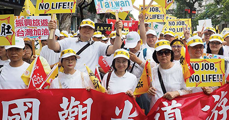 هزاران نفر از کارکنان بخش گردشگری تایوان، در تظاهراتی از دولت خواستند برای کم شدن تعدادی از گردشگران چینی در این کشور به دنبال تیره شدن روابط بین چین و تایوان، کاری کنند. با توجه به آمار رسمی، سال 2015، به دلیل گرم شدن روابط این کشور با چین، 40 درصد از گردشگران تایوان، چینی بودند.