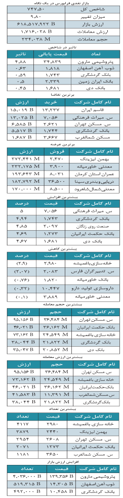 در آخرین روز معاملاتی هفته در بازار نقدی فرابورس ایران شاخص کل با 9 واحد افزایش به 747 واحد رسید. ارزش بازار اول و دوم فرابورس به 61هزار میلیارد تومان رسید. معاملهگران در فرابورس 234 میلیون برگ سهم در قالب 31 هزار و 538 فقره معامله و به ارزش 174 میلیارد تومان یعنی بیش از بازار بورس اوراق بهادار تهران دادوستد کردند.
