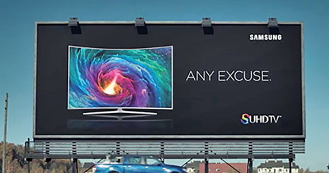 همزمان با آغاز فصل حراج كریسمس، سامسونگ انگلستان یك آگهی تبلیغاتی خنده دار را روی اینترنت پخش كرد كه در آن مردم پس از شكستن اتفاقی تلویزیونهای خود میتوانند جایگزینی برای آن بخرند. این آگهی، ساخته آژانس تبلیغاتی Fold&، تلویزیون SUHD سامسونگ را تبلیغ میكند.