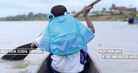 اقدام فوق با همكاری سازمان صلیب سرخ كلمبیا و آژانس تبلیغاتی JWT این كشور صورت گرفت. این كولهپشتی ناجی میتواند با نگه داشتن بچههای پنج تا 12 ساله، حتی در صورت سقوط ناخودآگاه آنها درون آب، ضمن حفظ حالت قائمشان، مانع از غرق شدن كودكان شود. همچنین این كوله پشتی مجهز به یك كیف در داخل برای محافظت از كتابها، یك سوت ضد آب، یك دستگیره برای هل دادن بچهها به درون قایق درمواقع اضطراری و یكسری دستورالعملهای احیای قلبی ریوی دوخته شده به پشت كولهپشتی نیز هست.