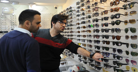 ظاهراً هیچ ارگان یا نهادی هم مسئولیت رسیدگی به این قوارههای نیمه ویران را به عهده نگرفته. فعلاً که مشکلی پیش نیامده و همه به کار و بار خود مشغول هستند. با این تفاسیر علاوه بر تنوع جنس، تنوع مغازه و فروشگاه هم به چشم میخورد؛ بعضیها بزرگ و شیک و پرنور و برخی دیگر کوچک و ساده و معمولی. تعدادی از این مغازههای بزرگتر و لوکس دو طبقههستند. طبقه اول را به عینک طبی و طبقه دوم را به قسمت عینک آفتابی، مدلهای خیلی گران و سفارشی، تعمیرات و تراش عدسی و لوازم جانبی اختصاص دادهاند.