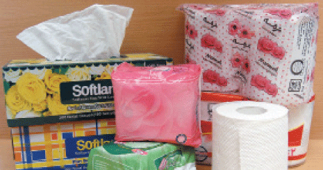 سالانه بیش از صد هزار تن انواع دستمال کاغذی مصرف میشود که تماما در داخل کشور تولید میشوند. همچنین سالانه حدود 80 هزار تن انواع محصولات بهداشتی مورد نیاز کودکان، بزرگسالان و بانوان در کشور مصرف میشود که به دلیل همان عامل پایین بودن نرخ تعرفه وارداتی و به سود بودن وارد کردن این محصولات، بسیاری از این محصولات وارداتی هستند.