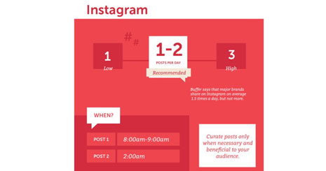 باتوجه به مطالعه موسسه CoSchedule Analysis، حالت ایده آل بارگذاری یک یا حداکثر دو پست در روز است. بهترین زمان های بارگذاری پست نیز بین 8 تا 9 صبح و حوالی ساعت 2 بعد از نیمه شب خواهد بود.