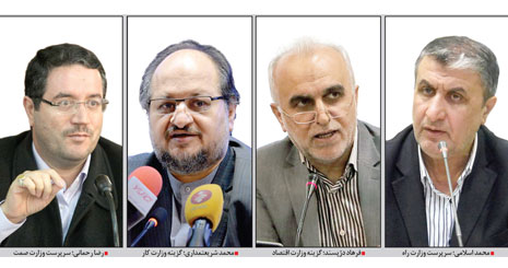 فرصت امروز: رئیس جمهور دیروز با ارسال نامه ای به مجلس، وزرای پیشنهادی خود را برای چهار وزارتخانه «تعاون، کار و رفاه اجتماعی»، «راه و شهرسازی»، «امور اقتصادی و دارایی» و وزارت «صنعت، معدن و تجارت» معرفی کرد. در نامه حسن روحانی به علی لاریجانی رئیس مجلس، محمد اسلامی به عنوان وزیر پیشنهادی راه و شهرسازی، فرهاد دژپسند به عنوان وزیر پیشنهادی امور اقتصادی و دارایی، محمد شریعتمداری وزیر پیشنهادی تعاون، کار و رفاه اجتماعی و همچنین رضا رحمانی به عنوان وزیر پیشنهادی صنعت، معدن و تجارت معرفی شده است.