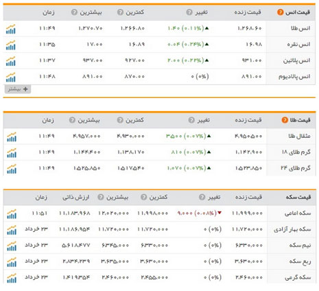 به دنبال افزایش اونس جهانی،پیش بینی ها حکایت از آن دارد که قیمت طلا طی روزهای آینده به تبعیت از افزایش اونس در بازار جهانی رو به افزایش خواهد گذاشت.با این حال امروز چندان افزایش قابل توجهی در قیمت ها اتفاق نیفتاد.
