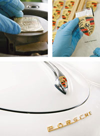 این لوگو در ابتدا براساس نماد ایالتی" Free People " (مردمان آزاد)* در ووتنبرگ آلمان طراحی شد، اما از آنجایی که پورشه خودروهای خودرا در در شهر اشتوتگارت تولید می کرد، لذا نماد این شهر را نیز همانند سپری کوچکتر در مرکز لوگوی قبلی قرار دادند.