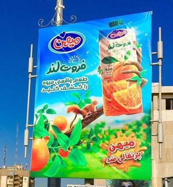 مدیر تبلیغات شرکت میهن در رابطه با تبلیغات محیطی این شرکت که در ابتدا تنها در اختیار طعم پرتقال بود، ادامه می دهد: بازار آبمیوه و طعم های ارائه شده در آن برخلاف بازار بستنی که می توان طعم ها و شکل های مختلف ارائه کرد تا حدی محدود است. قطعا یکی از طعم های پرطرفدار هم همان طعم پرتقال هست که به عنوان بنر در سطح شهر تبلیغ شد.
