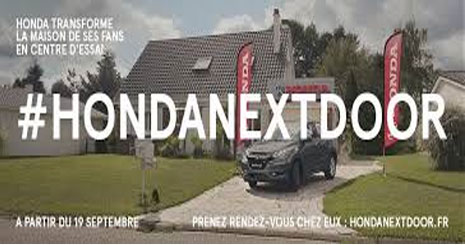 پروژه سه هفته ای #HondaNextDoor در ماه سپتامبر در دنیای مطبوعات، اینترنت، رسانه های اجتماعی و کمپین تلویزیونی از مشتریان برای ثبت نام آنلاین تست درایو به طور مستقیم در نمایندگی پاپ آپ دعوت کرد. در پی پخش یک نسخه ابتدایی از فیلمی با حضور یک طرفدار وفادار هوندا، محتوای اضافی به طور تجربی به نسخه اصلی فیلم افزوده می شود.