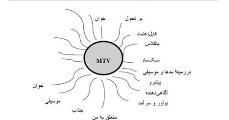 نمودار زیر نشان دهنده یک نقشه ذهنی فرضی و تداعیات اصلی از برند MTV است: