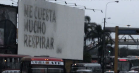 بیلبورد فوق ابتدا سطحی به سفیدی برف داشت اما 15 روز پس از شروع این فرآیند، پیام نهایی مشخص شد؛ «نفس کشیدن برای من هزینه زیادی در پی داشت.»