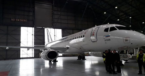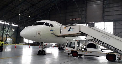 یک فروند هواپیمای سوپر جت 100 روسی ساعت 7 صبح امروز در فرودگاه مهرآباد به زمین نشست تا در معرض دید شرکت های هواپیمایی ایرانی قرار گیرد.