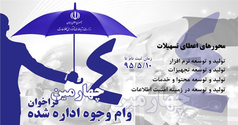 وزارت ارتباطات و فناوری اطلاعات برای چهارمین بار جهت اعطای تسهیلات وجوه اداره شده به طرح های فناورانه از تاریخ 95/5/10 تا 95/5/30 از طریق پست بانک ایران فراخوان داد.