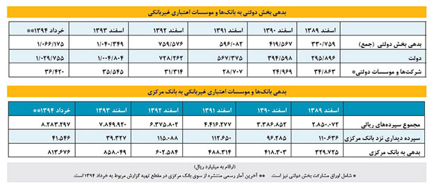 باید بر این نكته تاكید کرد كه یكی از معضلات مهمی كه در طول سالهای اخیر گریبانگیر بسیاری از پیمانكاران بخشخصوصی و همچنین بانكهای بزرگ كشور بوده است مسئله بدهی دولت به آنها است.حجم بدهیهای بخش دولتی (شامل دولت و شركتها و موسسات دولتی) به سیستم بانكی طی سالهای گذشته روند رو به رشدی را تجربه كرده است بهطوری كه در طول چهار سال (از اسفند 1389 تا اسفند 1393) حجم بدهیهای دولت به بیش از سه برابر افزایش یافته است و این امر در واقع نشاندهنده نقشی است كه بانكها همواره بهعنوان خزانه دوم دولت بر عهده داشتهاند. اگر به تناسب همین افزایش بدهی، میزان مطالبات غیرجاری دولت نیز افزایش یافته باشد، میتوان نتیجه گرفت كه تسریع در بازپرداخت بدهیهای دولت به سیستم بانكی میتواند قدرت وامدهی بانکها را به مراتب افزایش دهد.
